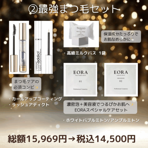 ネイルやまつ毛のアイテムやクッションファンデを含むケア商品の豪華クリスマスセットを数量限定でご用意!